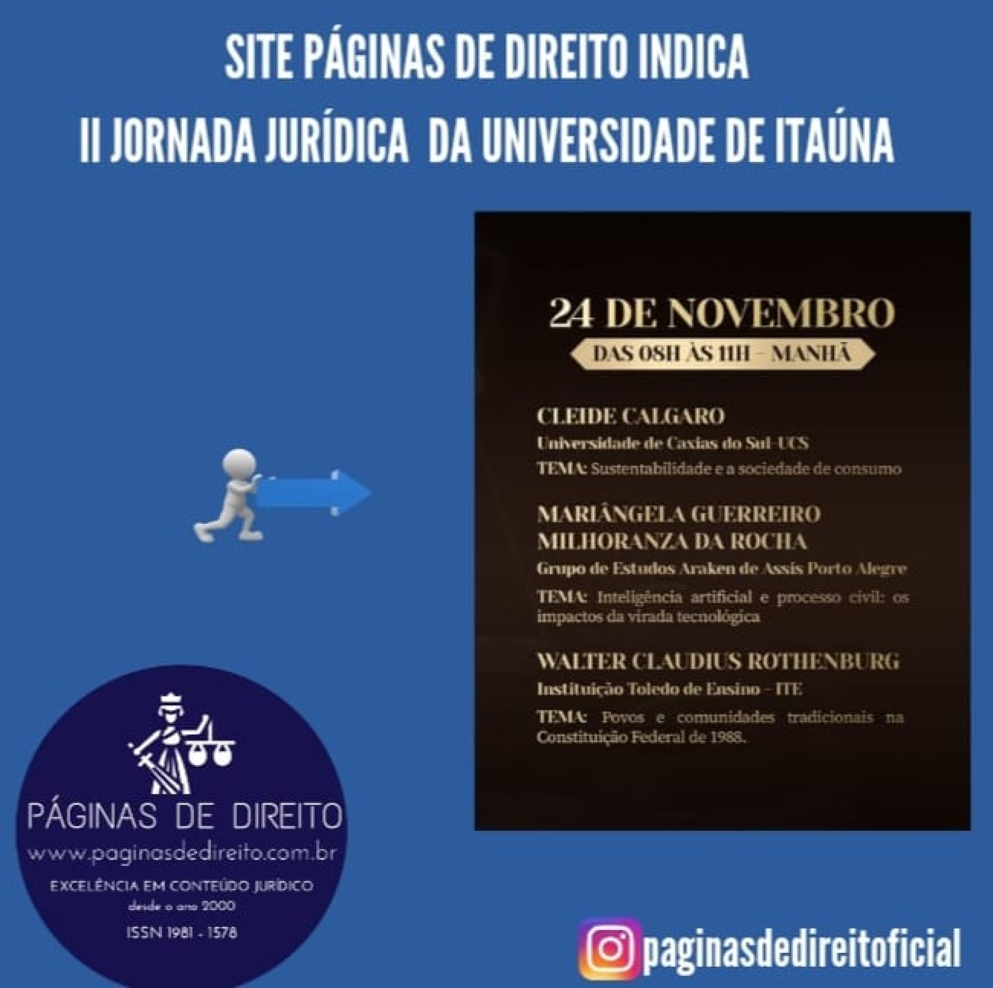 BRASIL, Deilton Ribeiro Brasil. II Jornada Jurídica da Universidade de Itaúna. Revista Páginas de Direito, Porto Alegre, ano 21, nº 1562, 24 de Novembro de 2021. Disponível em: https://mail.paginasdedireito.com.br/artigos/todos-os-artigos/ii-jornada-juridica-da-universidade-de-itauna.html